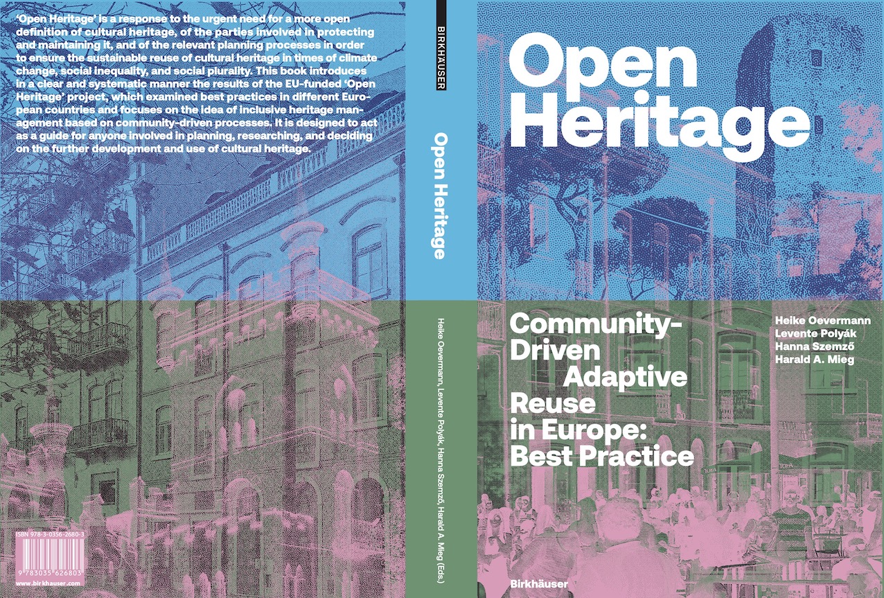 The resource titled "Open Heritage - Community-Driven Adaptive Reuse in Europe: Best Practice" is published by Birkhäuser and authored by Heike Oevermann, Hanna Szemző, Levente Polyák, and Harald A. Mieg. The publication explores innovative practices in adaptive reuse of heritage sites across Europe, focusing on community engagement and sustainable development.